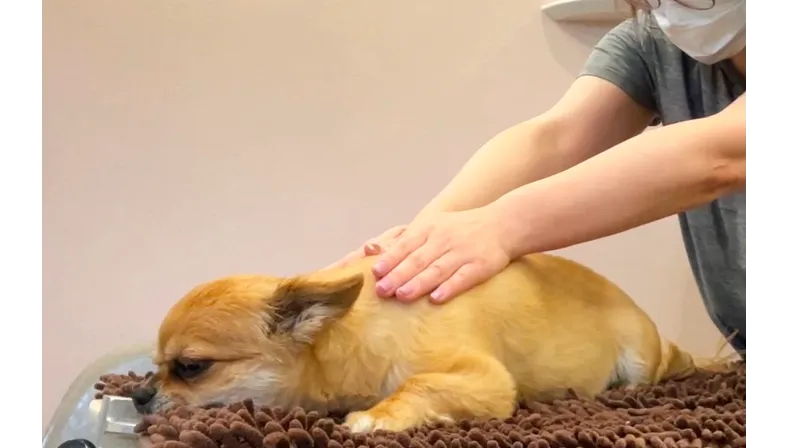 トリミング前にマッサージすることで、トリミングで過度な緊張を抑えることができます。マッサージで、楽な姿勢に導き、負担を軽減するトリミングができます。